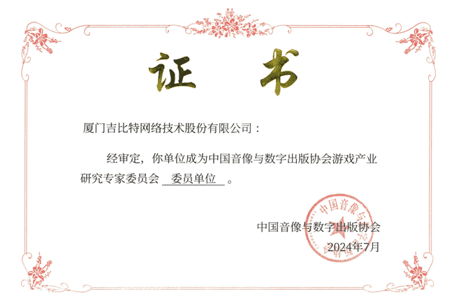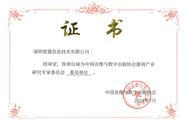 2024年7月25日,,中国音像与数字出版协会游戏产业研究专家委员会(以下简称“中国音数协游戏专委会”)成立大会在上海市召开,,,厦门赏金大对决网络技术股份有限公司及其子公司深圳雷霆信息技术有限公司(以下统称“公司”)正式成为中国音数协游戏专委会委员单位。。。。